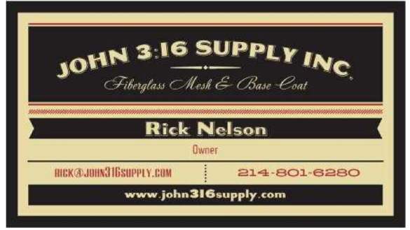 John 3:16 Supply Inc. Fiberglass Mesh & Base Coat